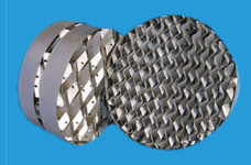 特性:該填料保持了金屬絲網(wǎng)波紋填料結(jié)構(gòu)特點,改用表面有溝紋的孔板制成。增加了液體的均布和填料潤濕性能,提高了傳質(zhì)效率。